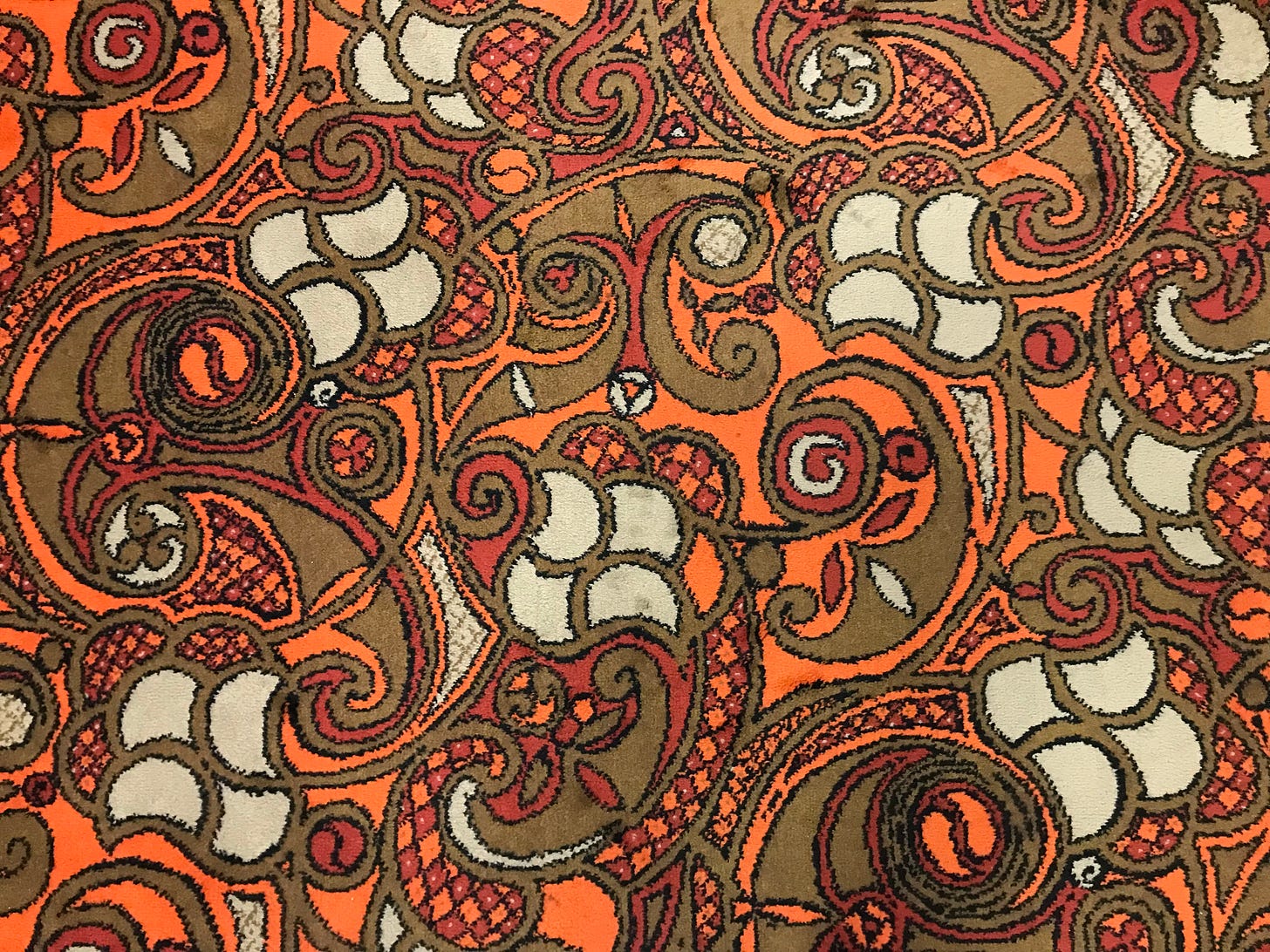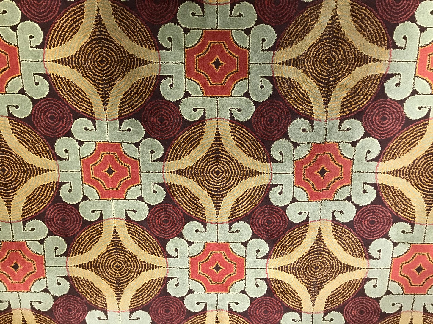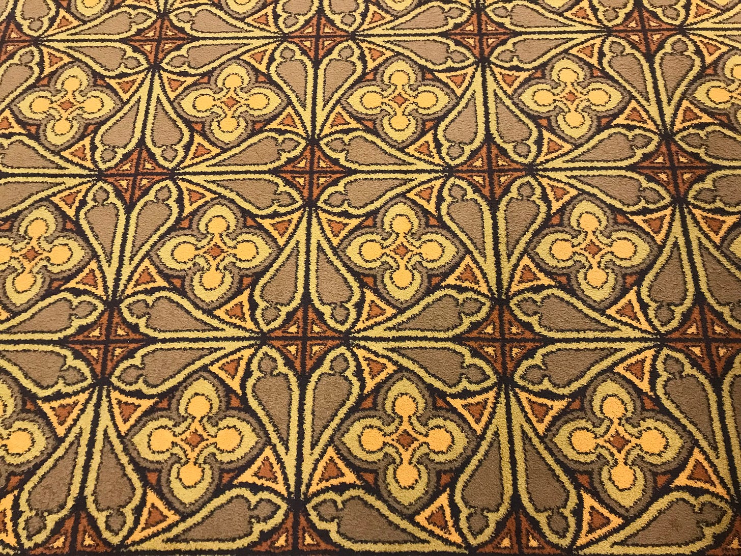 Made in the late 1970s by Hugh Mackay & Co, a Durham firm, the carpets cost £203,991.70. The designer, name unknown, must take their place alongside the Master of the Saint Bartholomew Altarpiece and other anonymous geniuses of art history.