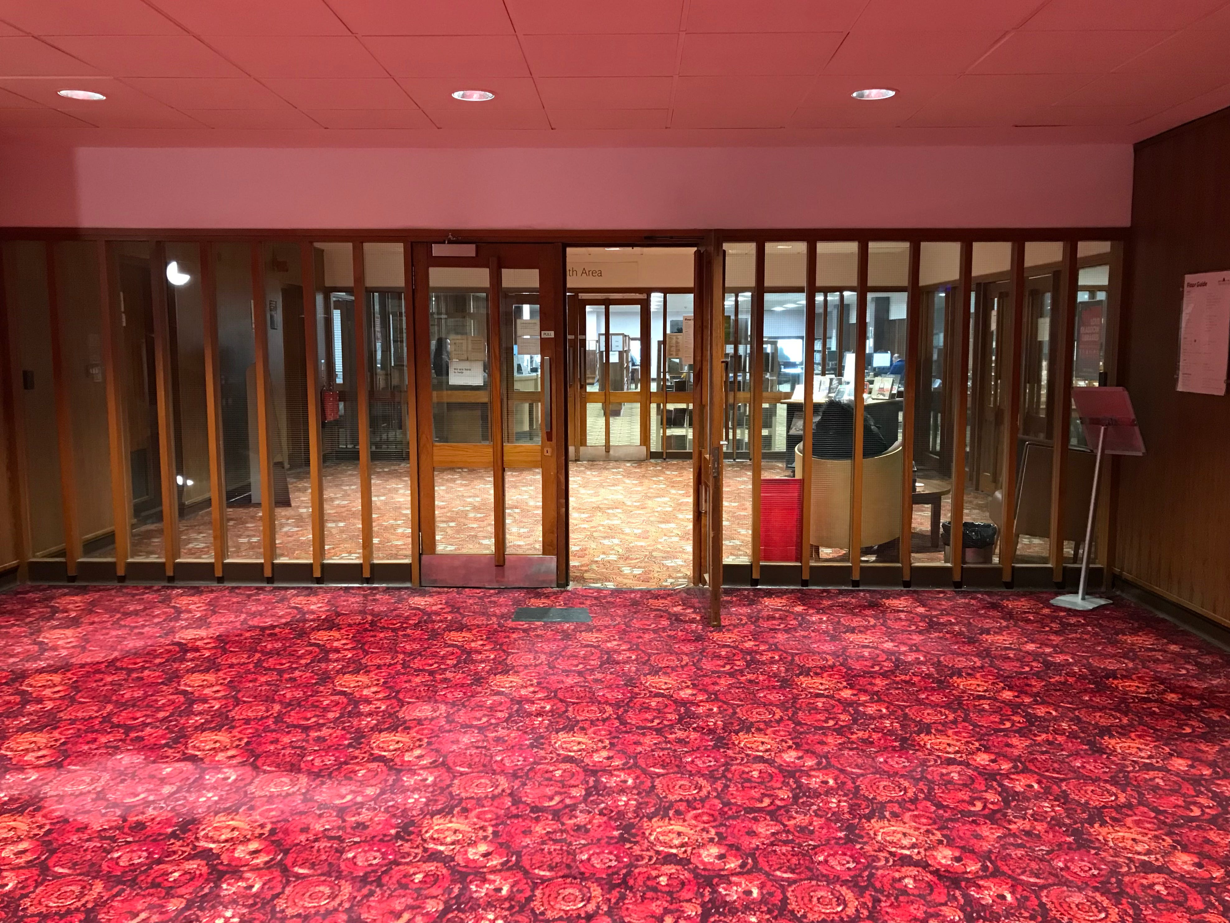 Given that they were laid more than forty years ago, and have since been walked upon by millions of library users, the carpets appear in remarkable condition. As a librarian once sighed, ‘They’re gonnae outlive us all.’