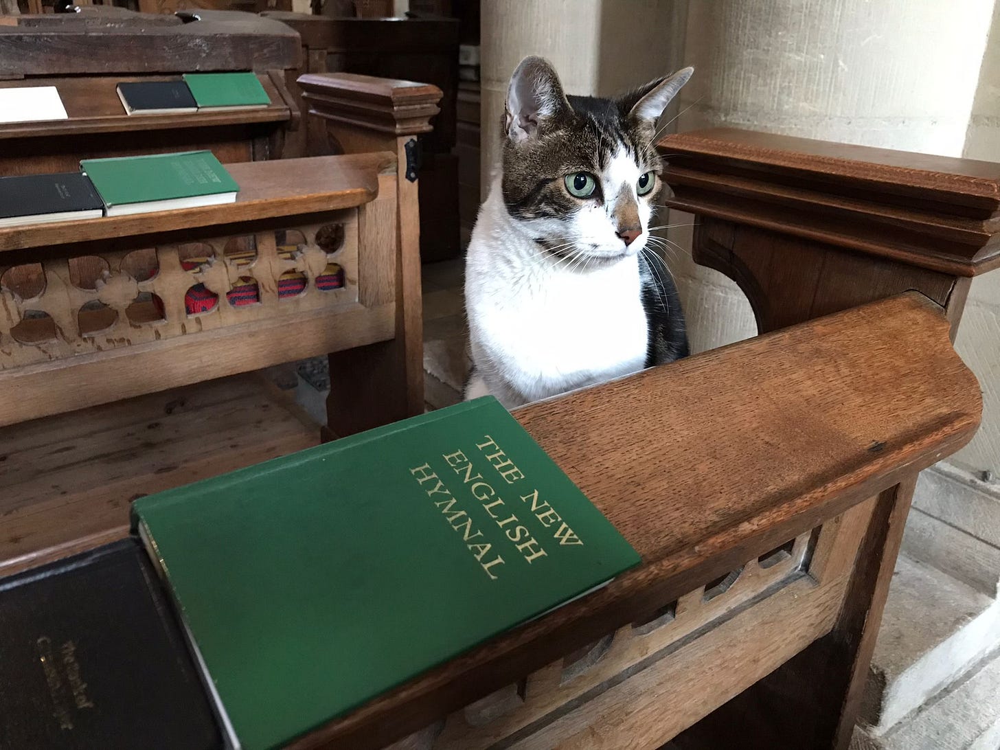 How delightful, on a recent visit to Norwich Cathedral, to encounter Budge. He was seated on a pew, eyes green as The New English Hymnal, a small creature in that great ancient space.